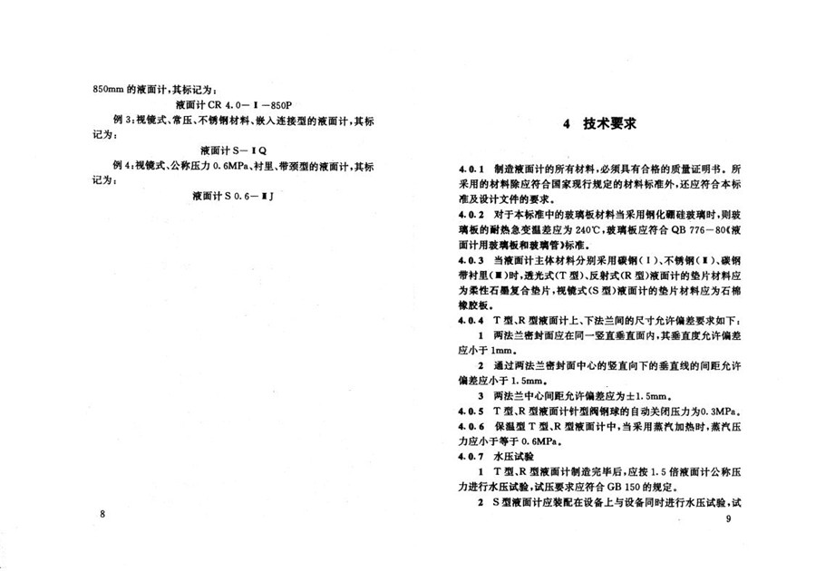 玻璃板液面計標準系列及技術要求