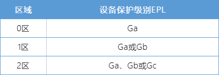 根據(jù)危險(xiǎn)場所分類,防爆區(qū)域與適用的設(shè)備保護(hù)級別EPL關(guān)系如下:
